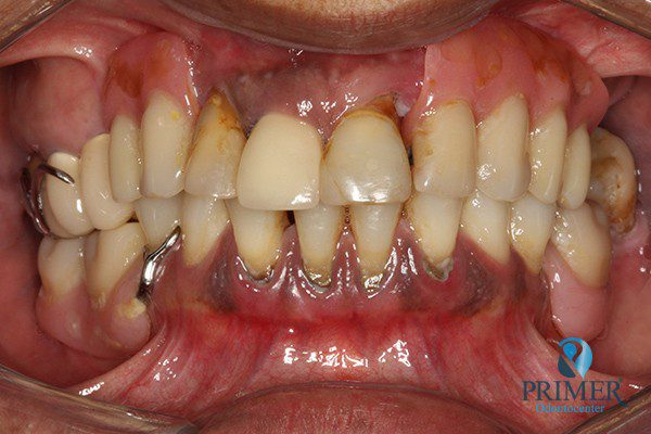 Realizado em: Agosto de 2012Detalhes do tratamento: Implantes instalados imediatamente após extrações de dentes inferiores e prótese fixa sobre implantes (instalada 72 horas após a cirurgia).